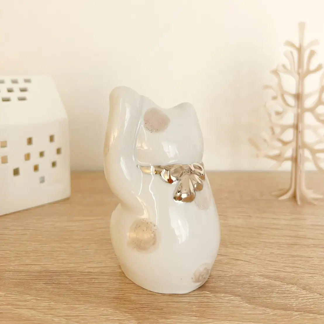 【招き猫1番人気】幸せ招き猫!ベージュのぶちの九谷焼招き猫!金ぶちちゃんと銀ぶちちゃん